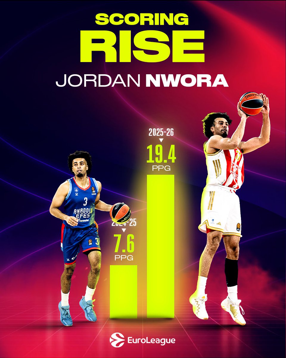 Jordan Nwora is having his best EuroLeague season so far 📈